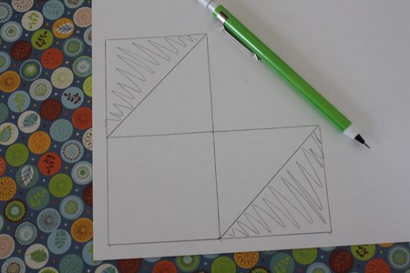 Шаг 2. Используйте линейку, чтобы провести диагональную линию в верхнем квадрате, от правого верхнего угла к левому нижнему. То же самое повторите с правым квадратом.