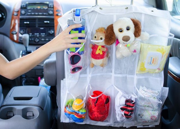 Устали от того, что в машине постоянный беспорядок и невозможно найти нужные и необходимые в дороге вещи? Сядьте, напишите список, что вашей семье обычно нужно во время путешествия или обычного перемещения по городу и заполните все кармашки органайзера вещами первой необходимости. Пусть никакая деталь не испортит вашу семейную поездку!