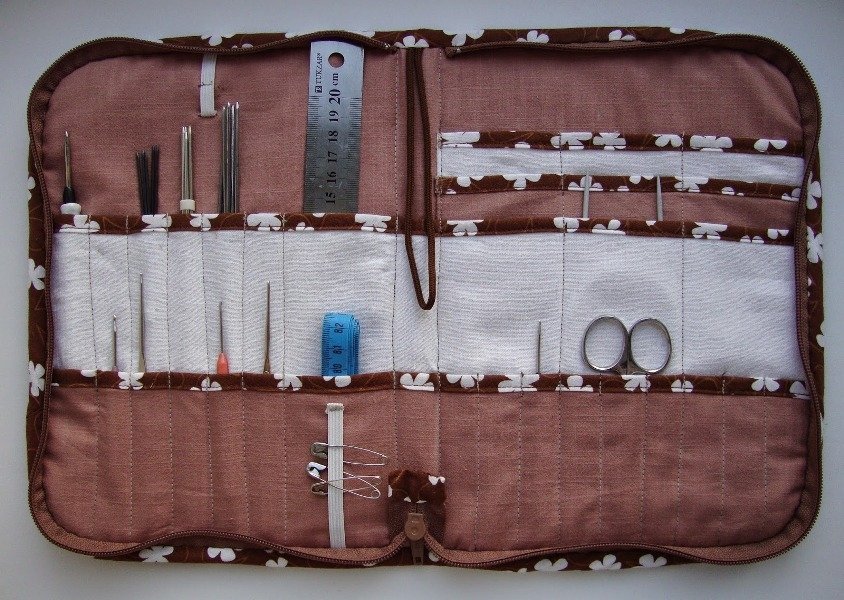 Здесь все предельно просто. Ваши спицы и крючки надежно зафиксированы в таком чехле и не теряются по всему дому. Чаще всего такую вещь можно увидеть на ярмарках мастеров. Выглядит она подобно книжке, на каждом листочке которой можно разместить свои вязальные принадлежности.Большинство из вышеперечисленного – это не финансово затратные вещи. Однако они смогут значительно сэкономить ваши силы на рутинных мелочах.