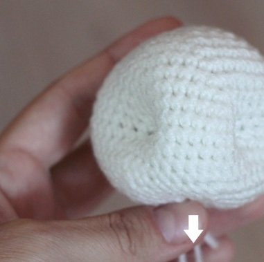 Не обрезайте нить! Нею же пришейте голову, спрятав концы деталей внутрь (см. фото).