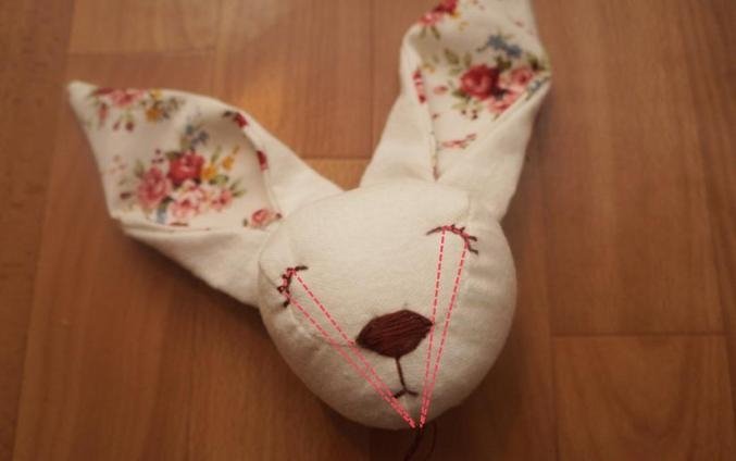 Закрепите. Пришейте ухо к голове. Аналогично повторите операцию со вторым ухом.