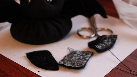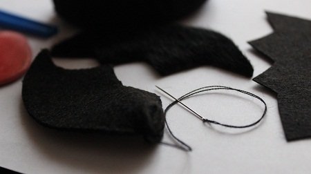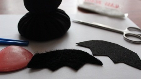 Нет меха? Его можно заменить плотной черной тканью. Если не удалось подобрать «не сыпучую ткань» – обработайте край обметочным швом.