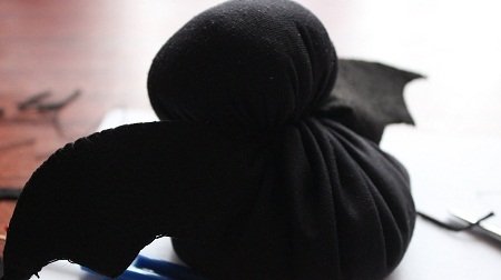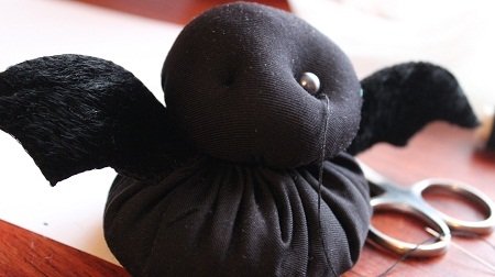 Прошейте детали обметочным швом. Место, где крылья будут крепиться к туловищу, прошейте швом «вперед иголка», стяните и закрепите нить.