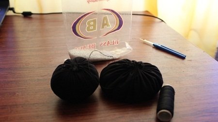 Со вторым кругом проделайте ту же процедуру. Вместо наполнителя используйте бисер. Не насыпайте его слишком много – он должен легко пересыпаться внутри туловища. Затяните полностью, закрепите.