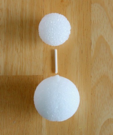 - 2 пенопластовых шарика: один побольше — для туловища, второй поменьше — для головы;