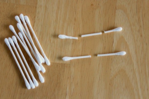 Режем палочки, можно пополам, а можно и на треть. Я резала на треть, так как пенопластовые шарики очень малы.