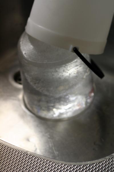 3. Сверху феном проплавляем небольшое отверстие (или выдалбливаем ножиком), выливаем оставшуюся воду и вставляем в отверстие свечу.