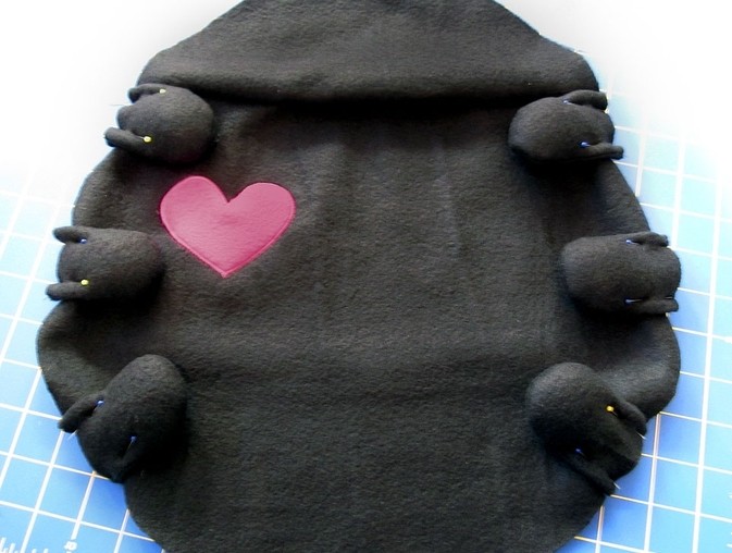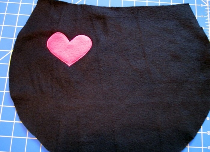 Таким же образом пришиваем небольшое розовое сердечко на деталь пузика.