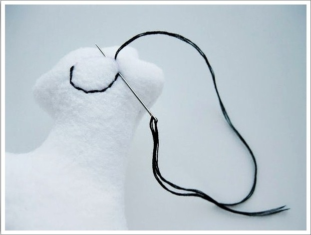 Черными нитками мулине вышиваем нужные детали на игрушке-подушке.
