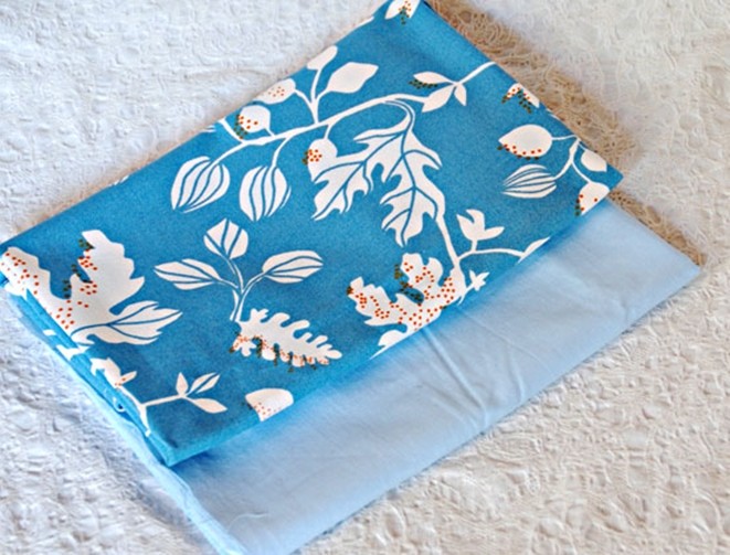 Сначала создаем на бумаге эскиз будущей подушки. Прикладываем к ткани и обводим мелом. У нас должны получиться две одинаковые детали из двух разных тканей.