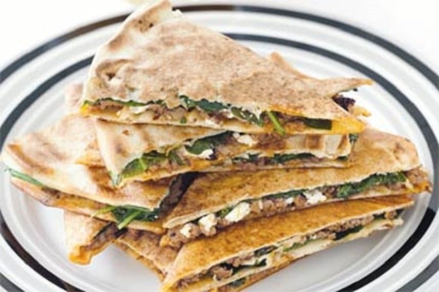 6. Кесадилья с бараниной, сыром фета и шпинатом