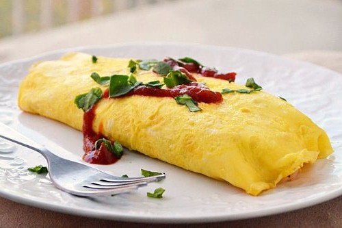 8. Готовый омлет подаем с кетчупом или другим соусом по вкусу.