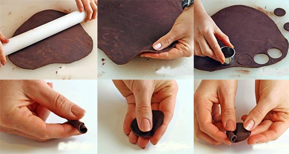 Начнем с того, что формируем центр розы: берем один из кружочков и скатываем его в трубочку. Оставляем маленькое отверстие в верхней части цилиндра, а большое отверстие - в нижней.