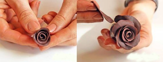 Шоколадные розы не только реалистично выглядят, но и являются невероятно вкусным десертом. Для их изготовления нужно предварительно сделать «шоколадный пластилин». Рецепт его приготовления очень простой и состоит всего из двух ингредиентов: 100 гр. шоколада (белого или черного) и 2-3 столовый ложки кукурузной глюкозы. Шоколад нужно растопить на паровой бане и добавить в него глюкозу.Начать замешивать шоколадный пластилин нужно пока он не станет однородной и эластичной массой. Если пластилин слишком жесткий, чтобы замесить, отправляем его в микроволновую печь на пять секунд, пока он не станет податливым. Не нужно слишком долго его запекать, иначе масса станет слишком мягкой для работы.