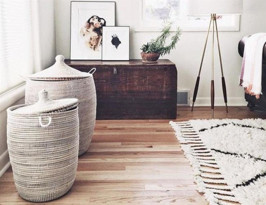 Возьмите себе в помощники красивые плетеные корзины или деревяные сундуки, - они смогу стать не только отличным элементом декора, но и помогут при хранении вещей. Такие предметы интерьера смогут стать хорошей альтернативой большой мебели. Они сохраняют пространство свободным, но предоставляют оригинальные функциональные эстетические решения.