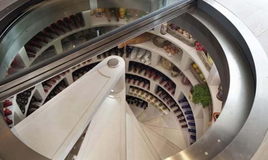 Правильно было отметить, что эта идея актуальна только для больших семей, живущих под одной крышей. К тому же, ее исполнение не из дешевых. Но задумка просто изумительная! Подумайте только: вино и продукты питания хранятся в подземной кладовой, которую можно увидеть прямо из кухни, сквозь смотровое стекло в полу. И не только увидеть, вы можете спуститься к своим богатствам вниз по шикарной винтовой лестнице.