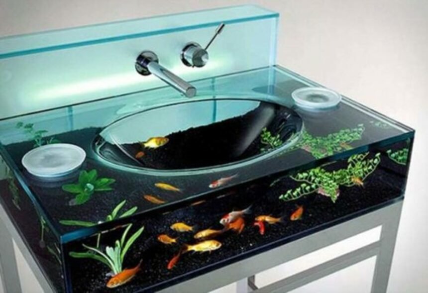 Представьте себе удивление и восторг ваших гостей, которые заходят в ванную комнату, чтобы помыть руки и видят этот прекрасный аквариум. Ваша идея точно не останется незамеченной.