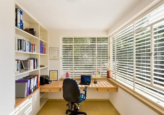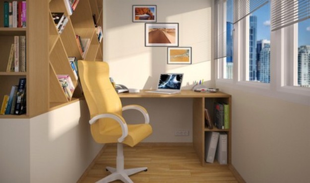 Сейчас такой вариант весьма популярен. Застекленные и утепленные лоджии без труда вмещают письменный стол средних размеров со всем необходимым, что превращает обычную лоджию в уютный, достаточно изолированный кабинет.Для такого рабочего места есть несколько нюансов. Нужно позаботиться об утеплении балкона — утеплить стены, пол, многослойный стеклопакет. И купить плотные шторы или жалюзи для спокойной работы летом.