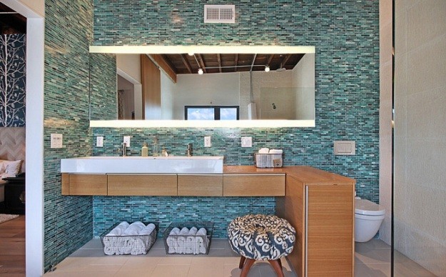 Бирюзовый - чудесный цвет, который освежает ванную комнату не только зимой, но и весь год, даря чудесные воспоминания о море, солнце, пляже.