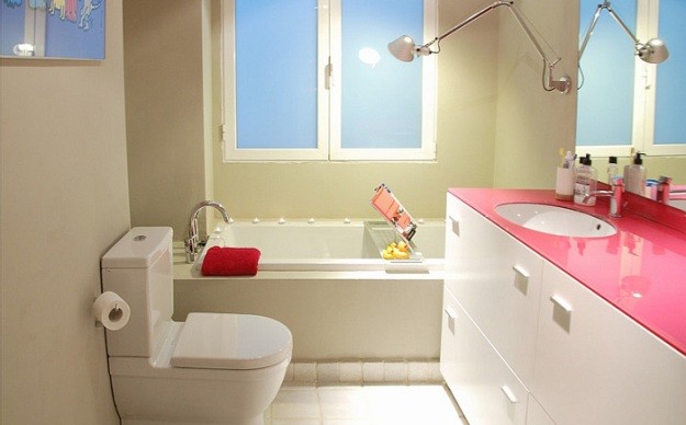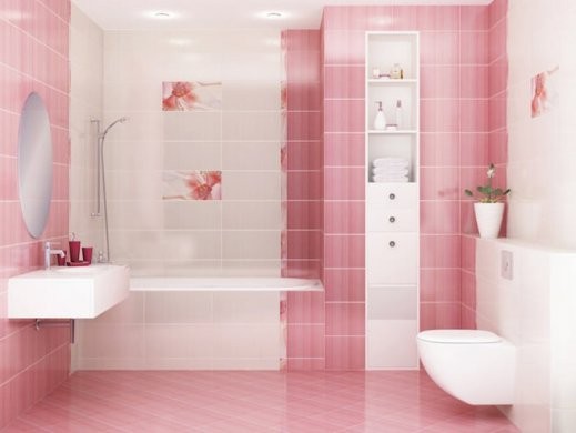 Теплые оттенки, к примеру, фуксия, или пастельные тона сделают вашу ванную роскошной комнатой. Не забудьте про акценты розового в виде полотенец, занавесок, или даже предметов мебели.