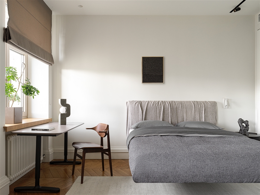 При использовании нейтральных цветов в интерьере важно придерживаться правила 60-30-10. Согласно этому принципу, 60% пространства должно быть окрашено основным нейтральным цветом (например, стены и потолок), 30% отведено второму нейтральному оттенку (например, мебель), а оставшиеся 10% занимают яркие акцентные цвета (декор и текстиль). Такое распределение цветов помогает создать сбалансированный и гармоничный интерьер, избегая визуального беспорядка.В небольших комнатах игра оттенков нейтральных цветов создает глубину и визуальный интерес, а светлые стены расширяют пространство, в то время как темные акценты добавляют контраста и сохраняют общую легкость.
