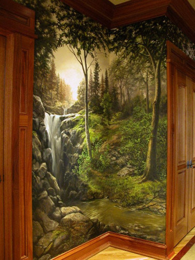 Настенная живопись, или роспись поверхностей, популярна уже сотни лет. Это украшает интерьер дома и экономит время и деньги на ремонты. Подумайте только, не нужно регулярно покупать новые обои или перекрашивать стены из голубого в розовый. Вы просто выбрали дизайн и под него наносите рисунок.Если вы когда-то клеили дома «пейзажные» обои с видом на речку или какой-то остров, то сможете лучше понять, зачем нужна роспись поверхностей. Это нескучно, красиво, сугубо индивидуально и неповторимо. Каждый рисунок наносится художником вручную. Его вы выбираете по своему вкусу, а не рассматриваете скупые предложение в магазинах, которые наштампованы по стандарту. Хотите сделать себе модную комнату? Разрисуйте стены нарядами, обувью или аксессуарами. Желаете украсить кухню – нанесите на стены натюрморт, и вы будете сыты уже от самих картинок.