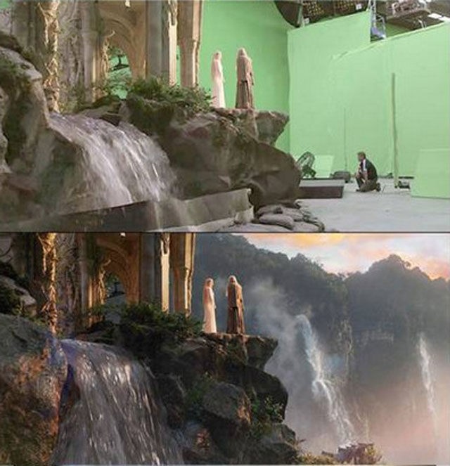 Зеленый рир в дальнейшем помог специалистам воспроизвести с эскизов художников пейзажи Волшебной страны, замок Белой и Красной королевы, лес Шляпника и большую часть персонажей. Так, используя визуальные эффекты, увеличили голову актрисы Хелен Бонем-Картер, которая играла Красную королеву, и глаза Безумного Шляпника, в исполнении Джонни Деппа.