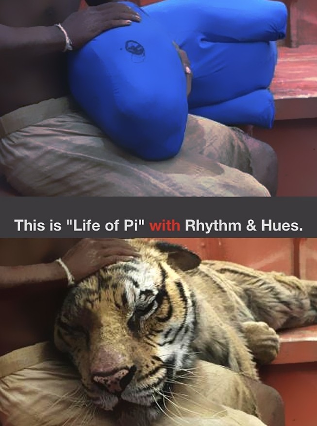 Еще один оскаровский лауреат – фильм тайского режиссера Энга Ли «Жизнь Пи». Он был снят, как и предыдущие фильмы, на зеленом и синем фоне, чтобы потом создать открытый океан с помощью графики. Но отличается этот фильм тем, как мастерски были созданы в нем животные.