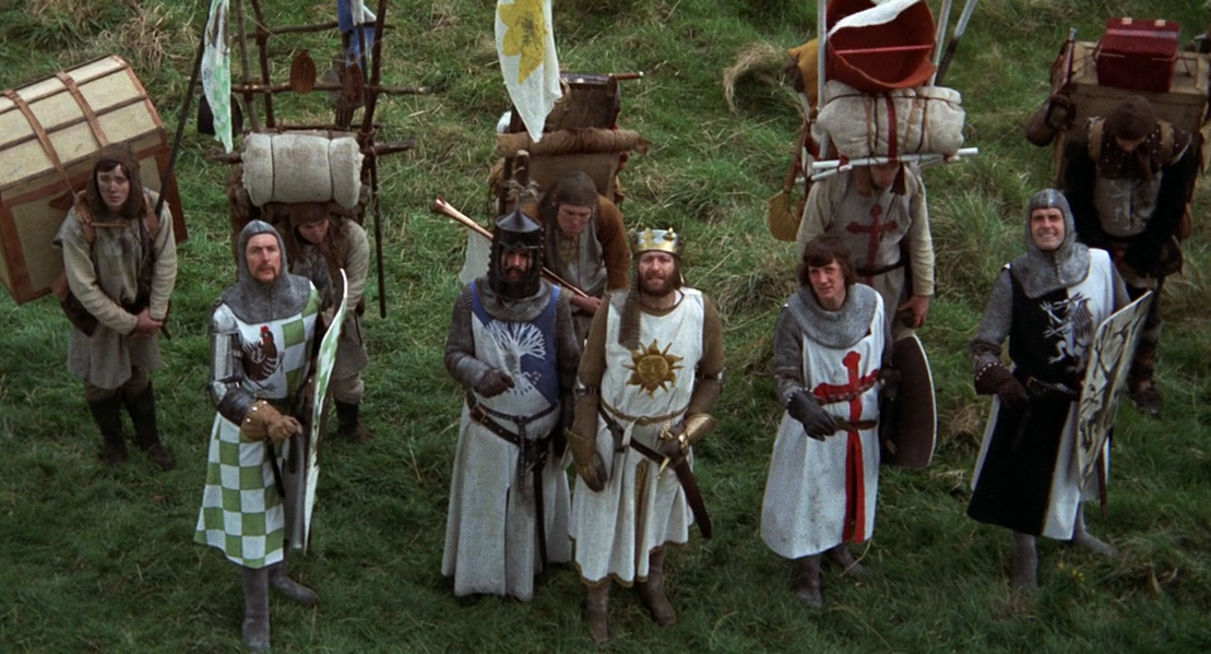 Артур, король бриттов, ездит по своему королевству и ищет рыцарей, которые отправятся с ним в Камелот. На своем пути он встречает сира Галахэда, сира Ланселота Храброго, тихого сира Бедивера, и сира Робина Не-такого-храброго-как-сир-Ланселот. Все они радо отправляются вместе с Артуром в Камелот, и во время одного из банкетов им является Бог и поручает найти Святой Грааль. Рыцари соглашаются и отправляются в путешествие, во время которого они встречаются с доблестными рыцарями, коварными карликами с ручной гранатой и французскими солдатами, которые по странному совпадению охраняют вход в замок Аррргххх, где и находится Святой Грааль.