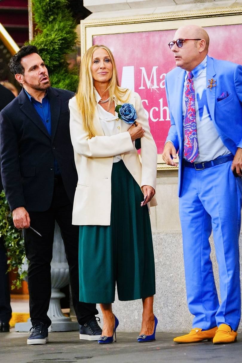 На данный есть следующие фотографии: Кристен Дэвис выгуливает милую собачку, возвращение Стива Брэди, цветочная брошь Кэрри (вдохновленная) и, похоже, напряженная сцена между Кэрри и Бигом. О-о, что нас ждет…