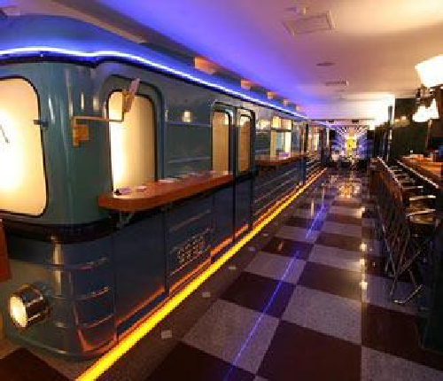 Этот ресторан имеет вид метрополитена. Вместо дорожных схем – меню. А вот старые турникеты для монет на входе оставлены. Конечно же, в зале имеется эскалатор и сиденья, как в вагоне метро, с перегородкой. Один столик, а лучше сказать, «посадочное место» рассчитано на 10 человек. Каждый вечер с 8 часов в нижнем зале звучит живая музыка.