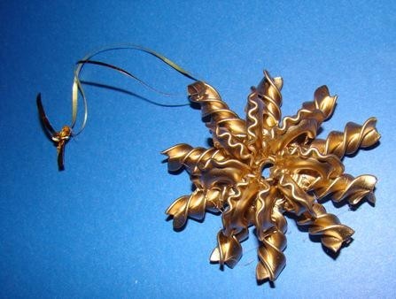 Из спагетти, рожек, спиралек, трубочек и прочей неизменной атрибутики итальянской кухни можно создать оригинальные елочные украшения. Раскрасьте их разноцветными красками, посыпьте глиттером и украсьте бисером.