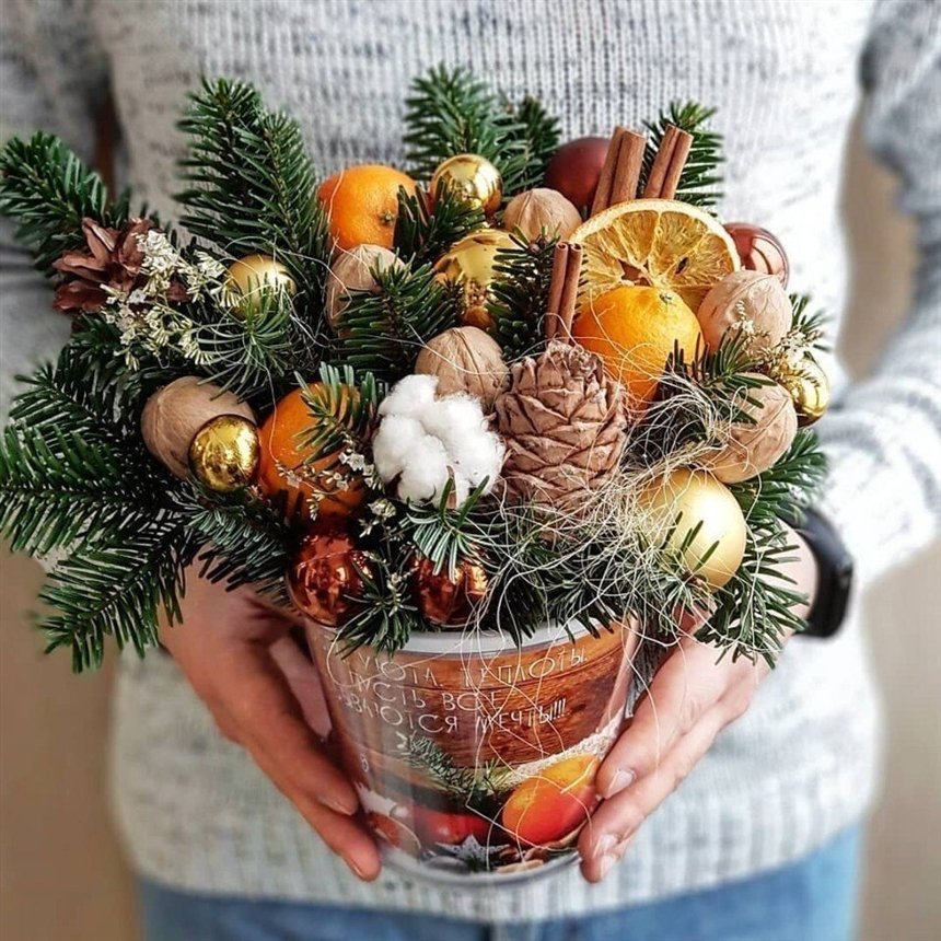 - Хвоя: веточки ели или сосны придают букету свежий, природный аромат и создают ощущение зимнего леса.