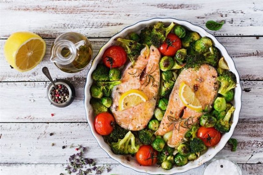 Ужин: овощной суп + запеченный морской окунь + обезжиренный йогурт
