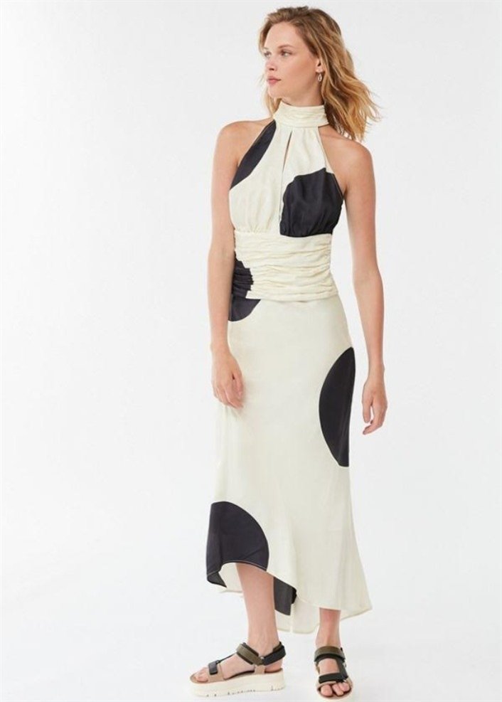 Вариант для тех, кто не очень любит цветочный принт. Вещи с принтом в горошек были популярны весь год, но летом их популярность возрастает. Принт в горошек может быть на платьях любого фасона. Ищите оригинальный вариант принта, как, например, на фото: в размере XL.