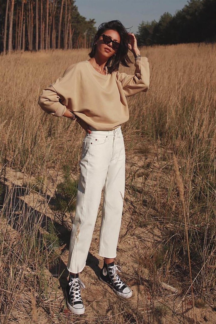 Сочетайте современные вещи с винтажными, это придаст оригинальный, неожиданный вид. Штаны с высокой талией, большие футболки, солнечные очки, шляпы… Все, что вдохновляет вас больше всего.7. Минималистичный стиль