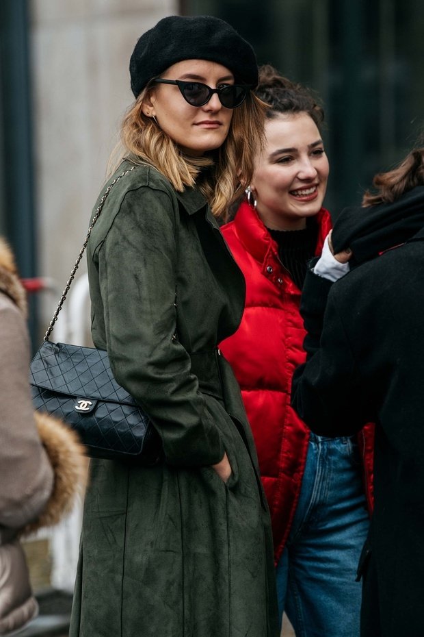 Тренч занимает чуть ли не первое место в списке бессмертных трендовых вещей. Хотя его появление в XX веке связано с военной средой, появление такого плаща в знаменитых фильмах сделало эту вещь необходимым, стильным, удобным трендом. Ткани и цвета могут меняться, хотя советуем выбирать более зимние тона. Не помешает пояс, который прибавит объема, и несколько аксессуаров, таких как черная сумочка и элегантный берет.