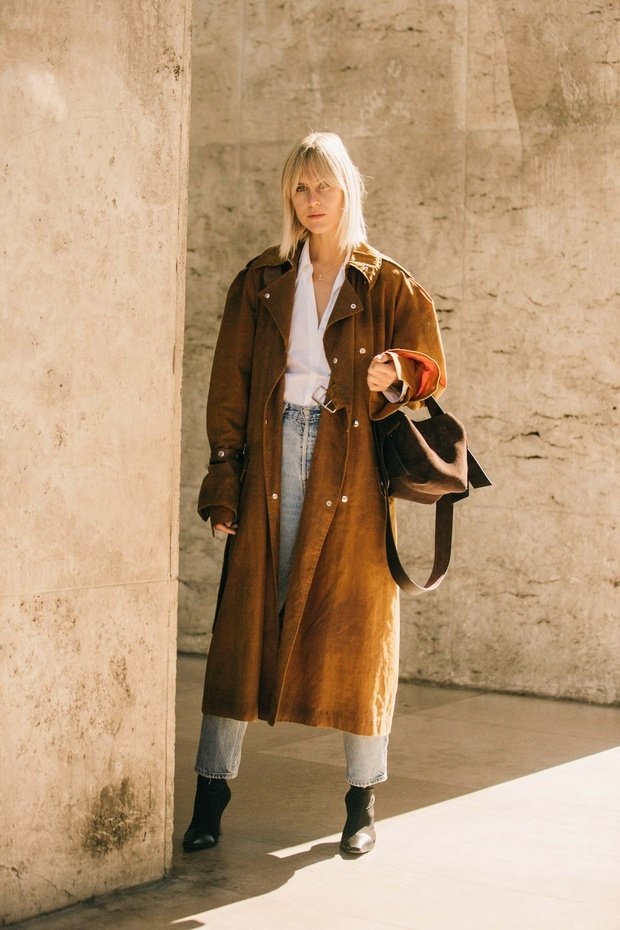 Возможно, в те дни, когда ваша фантазия спит, вы открываете шкаф и выбираете именно такую комбинацию. Все так же практично, как и в случае джинсов и свитера, но с некой изысканной деталью: классическим тренчем. Хотя образ кажется довольно банальным, стоит всего лишь взять плащ на размер больше и добавить аксессуар: например, большую сумку с короткой ручкой и строгие ботинки. Стильный, естественный и комфортный образ готов!