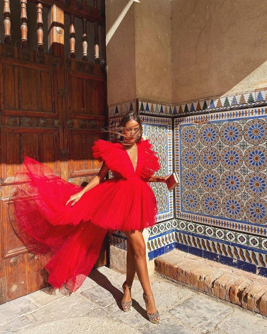Если вы внимательно следите за модой, то наверняка узнали это платье из коллекции бренда Giambattista Valli, созданное вместе с брендом H&M. Более того, в этом наряде дефилировала знаменитая Кендалл Дженнер. Это платье сочетает в себе три самые красивые тенденции 2020 года: фатин, объем и красный цвет. Мы уверены, что вы легко найдете подобную модель в своих любимых магазинах. Главное – не бойтесь чрезмерного объема, ведь только так вы точно привлечете к себе внимание всех окружающих
