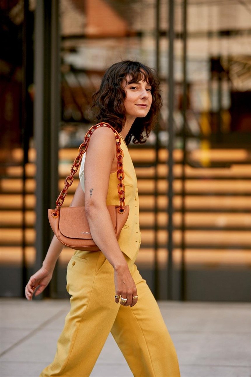 Это один из трендовых цветов сезона весна-лето 2020. Сочетайте желтый с вещами и аксессуарами коричневого цвета. Наряд будет выглядеть стильно и гармонично. Прекрасный вариант для уличного образа.
