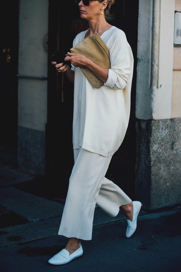 Дважды простота... Однако как стильно выглядит такой наряд! И это прекрасный вариант для любого сезона. Монохромность сейчас в тренде, поэтому не избегайте и не бойтесь таких сочетаний. Простой и летящий крой этих вещей создает небывалую элегантность и нежность. А что еще нужно в весенний сезон? Обязательно приобретите себе такой комплект.