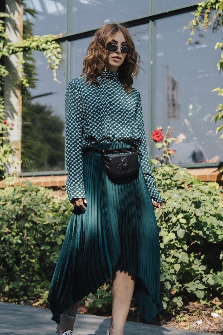Шелковые юбки тоже остаются важнейшей частью гардеробов мировых модниц. Сочетать такую юбку с актуальными тенденциями – лучшее, что можно придумать. Вам понадобится однотонный свитер (в тон с юбкой) и белые кроссовки. Монохромные образы сейчас в моде. Эта идея спасет вас в моменты наименьшего вдохновения.