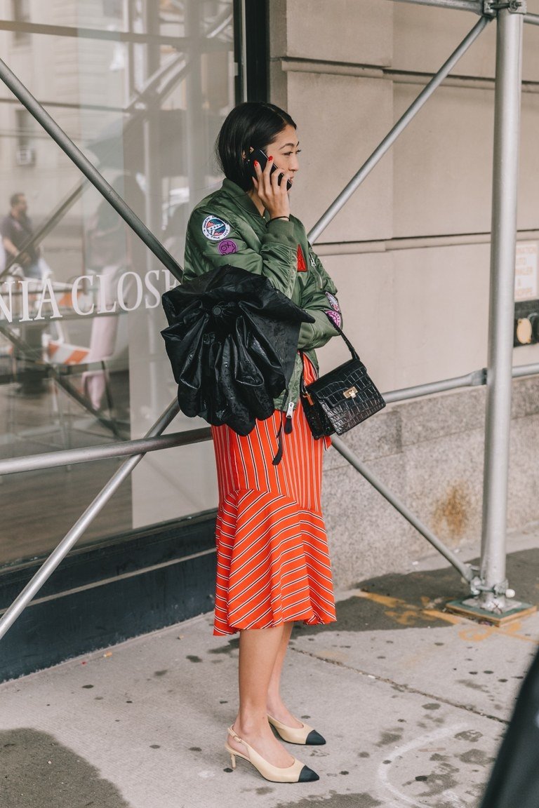 Еще одна неожиданная тенденция сезона осень-зима 2019/2020 – маленькая сумка, которую когда-то носила ваша бабушка. Да, мы говорим о той самой сумке прямоугольной формы с короткой ручкой и отделкой, напоминающей кожу крокодила. Стилисты сошлись во мнении, что пора доставать из шкафов эту давно забытую вещь. С чем сочетать такую сумку? Конечно, с элегантными вещами: с юбкой миди, туфлями на среднем каблуке и блузкой. Только не забывайте, что наступает сезон неожиданных тенденций, поэтому не все так просто. Обязательно сочетайте такой образ со спортивной курткой.