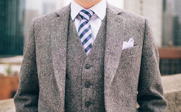 Такой пиджак отлично подойдет для холодного времени года. К нему подходят темные рубашки и коричневые ботинки.