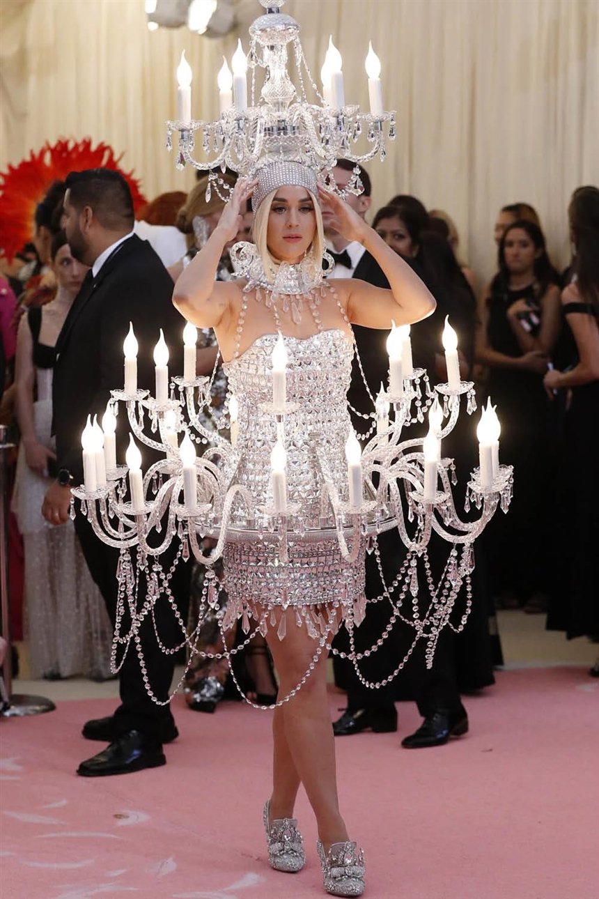 И еще один экстравагантный наряд на церемонии "Мет Гала". На красной дорожке этого праздника моды певица появилась в настоящей люстре! Платье создано в точности по форме роскошной люстры и полностью декорировано хрустальными деталями. Просто-таки свет церемонии!