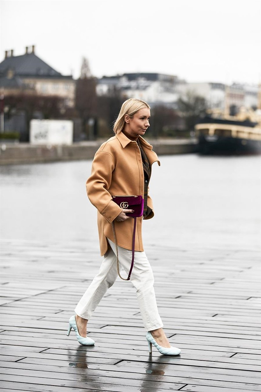 Это один из трендовых цветов сезона, поэтому вы без проблем можете включить его в ваши образы. Но как сделать так, чтобы бежевый цвет еще и стройнил? Это довольно простая задача. Выбирайте модель прямого кроя, на высокой талии и длиной ниже щиколотки. Чтобы создать гармоничный образ, предпочитайте однотонные вещи. Такое визуальное единство сделает вашу фигуру стройнее. Ну а обувь обязательно должна быть на каблуке.