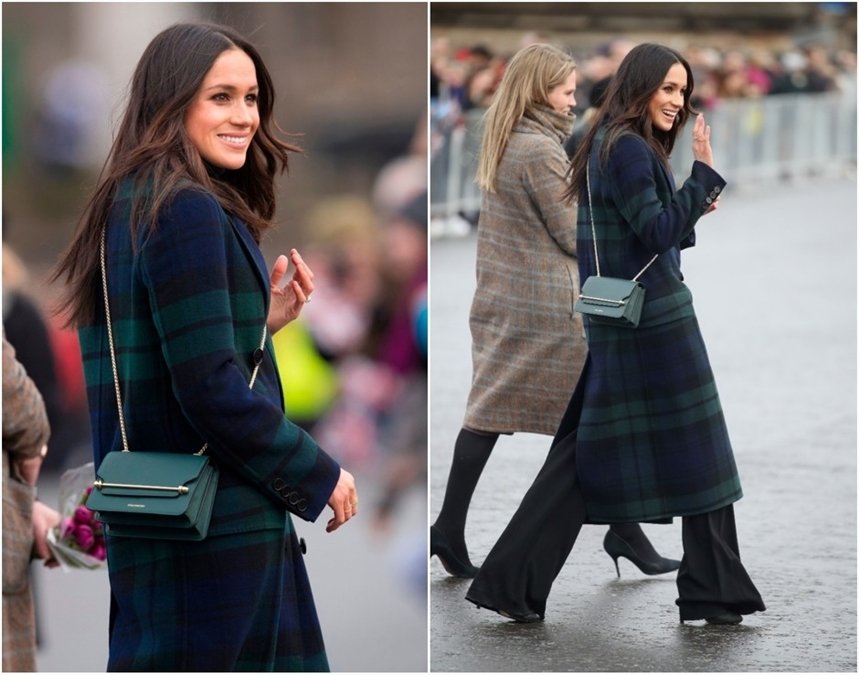 Один из любимых образов Меган Маркл, который легко воссоздать: зеленая юбка от Greta Consantine, пальто Mai и замшевые туфли Jimmy Choo. Но больше всего подчеркивает этот стиль сумка бренда Charlotte Elizabeth, которая прекрасно смотрится в любом цвете.