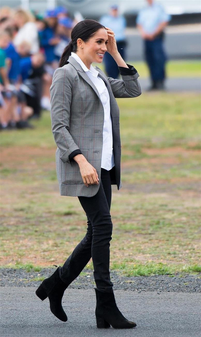 Без сомнения, австралийские образы Меган Маркл стали самыми комментируемыми и популярными из всех публичных выходов Меган. Один из таких образов стал очень простым и одновременно изысканным. Эти вещи до сих пор остаются желанными для многих модниц, но вот ботинки марки Stuart Wetizman не только хорошо продаются, но и стали доступны даже в стоковых магазинах.
