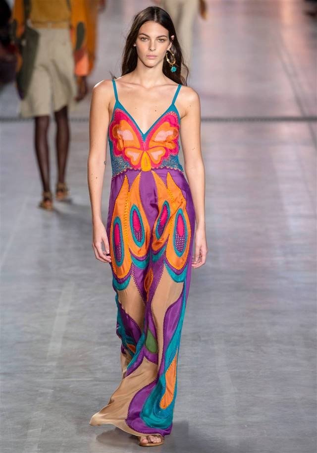 Принт tie-dye не единственный экземпляр в стиле хиппи, замеченный на показах знаменитых домов моды. Бренд Alberta Ferretti тоже предпочел эстетику 70-х годов и этот яркий принт бабочки. Выглядит, как минимум, оригинально и необычно.