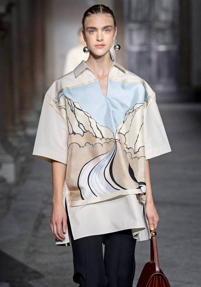 Дизайнер Жиль Сандер ввела в моду принт, который приглашает нас в путешествие. Рисунки дорог, пейзажей, городов – все это будет органично присутствовать на самых стильных футболках весны.